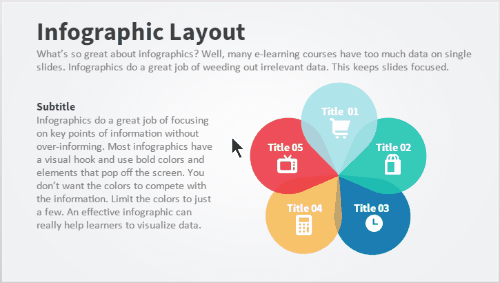 I corsi e-learning sono ancora essenzialmente un’esperienza visiva, quindi migliorare i contenuti visivi può aiutare a coinvolgere maggiormente gli studenti.