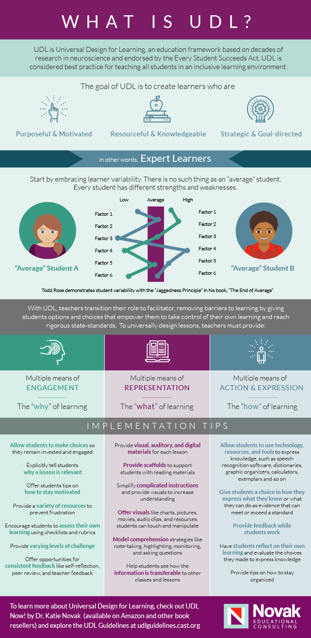 Questa infografica illustra le basi della UDL, compresi gli obiettivi e le linee guida e fornisce alcuni suggerimenti per l'implementazione.